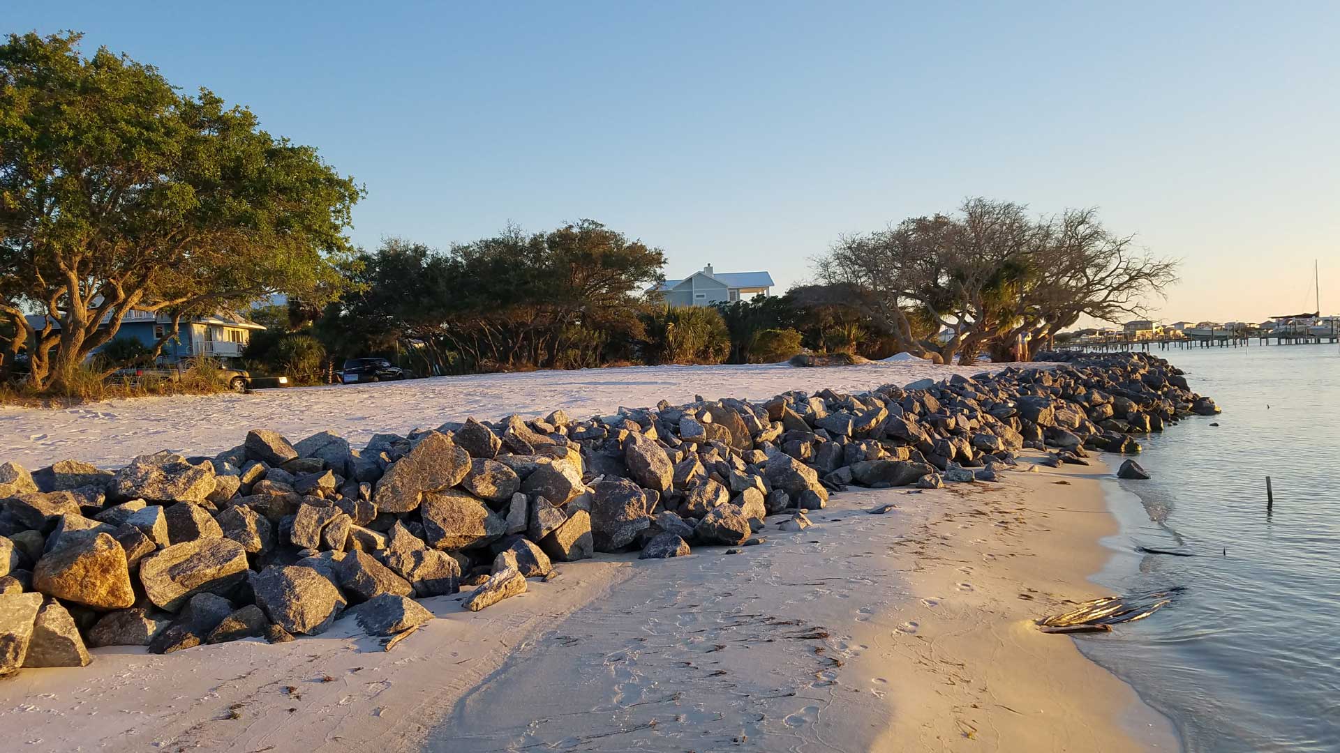 Limestone rip rap can be installed by itself or in front of a seawall. Permitting agencies sometimes require you to have rip rap if you are installing a new seawall.